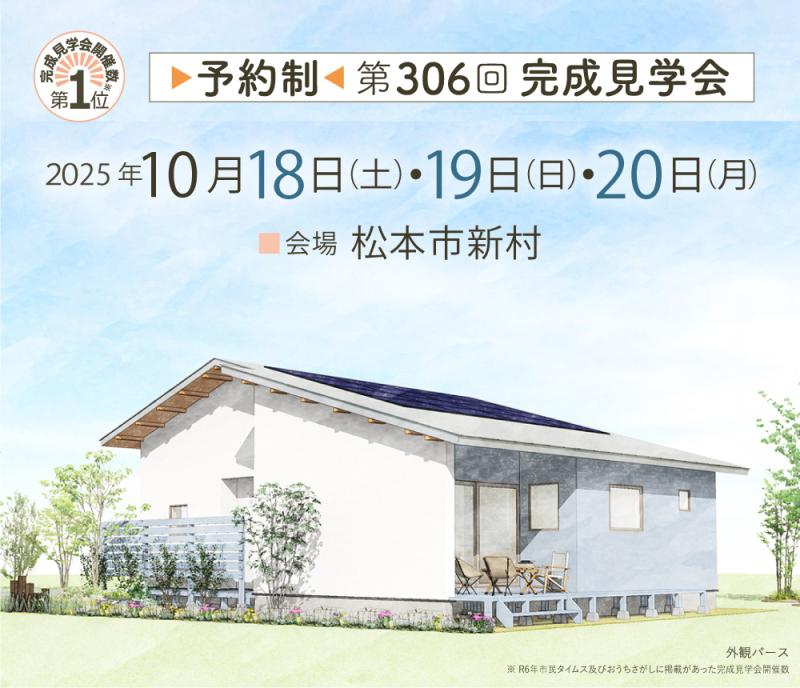 2025年10月18日(土)〜20日(月)の3日間、松本市新村にて完成見学会を開催いたします!