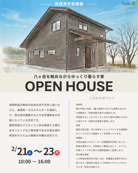 トップ > (株)宮沢工務店 > イベント情報 > 「八ヶ岳を眺めながらゆっくり暮らす家」予約なしで見学OK