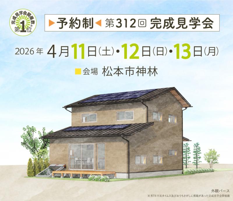 2026年4月11日(土)〜13日(月)の3日間、松本市神林にて完成見学会を開催いたします!